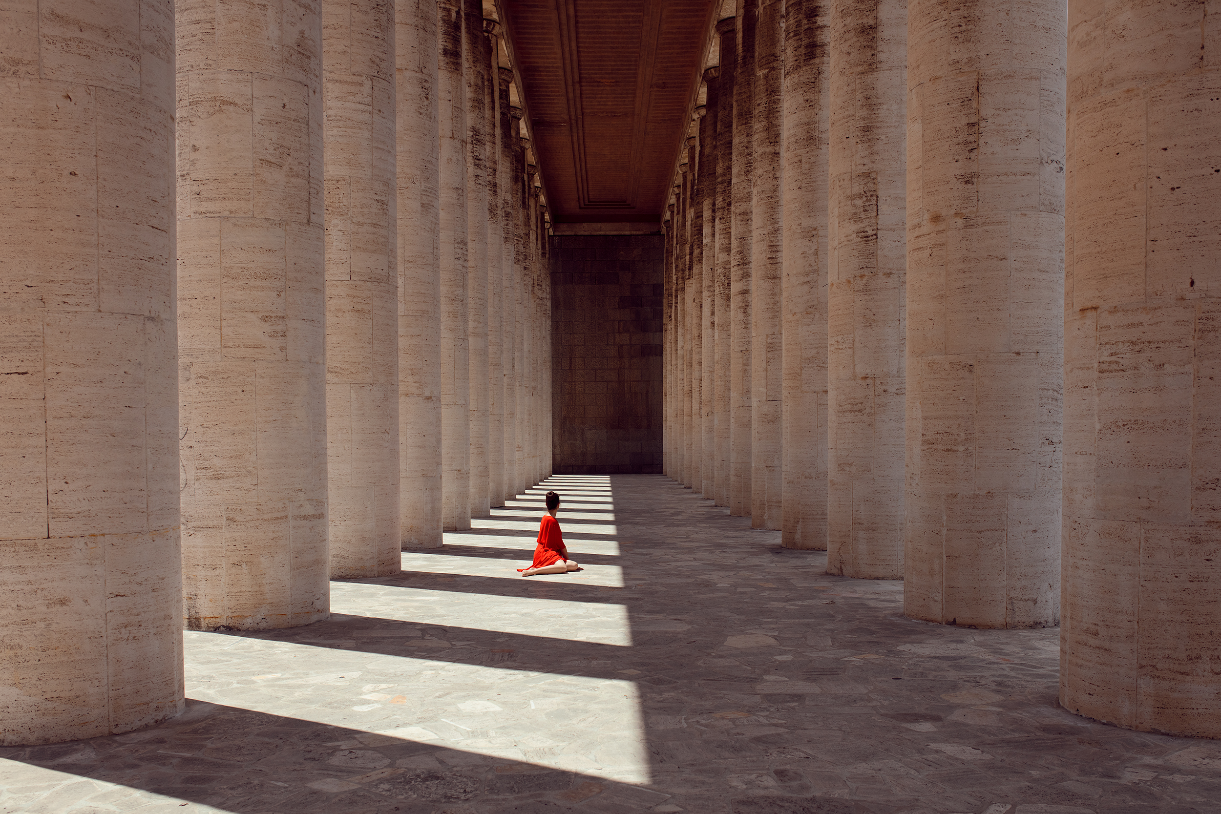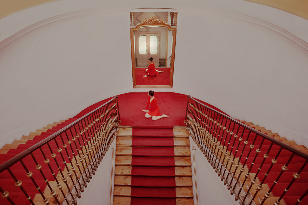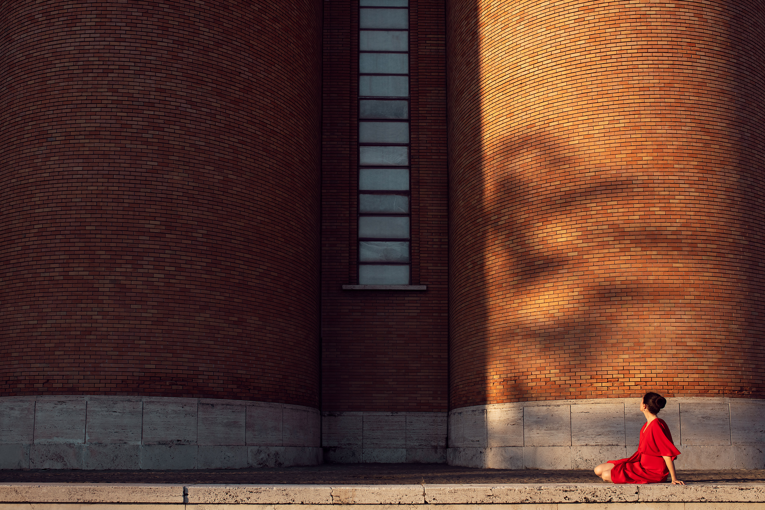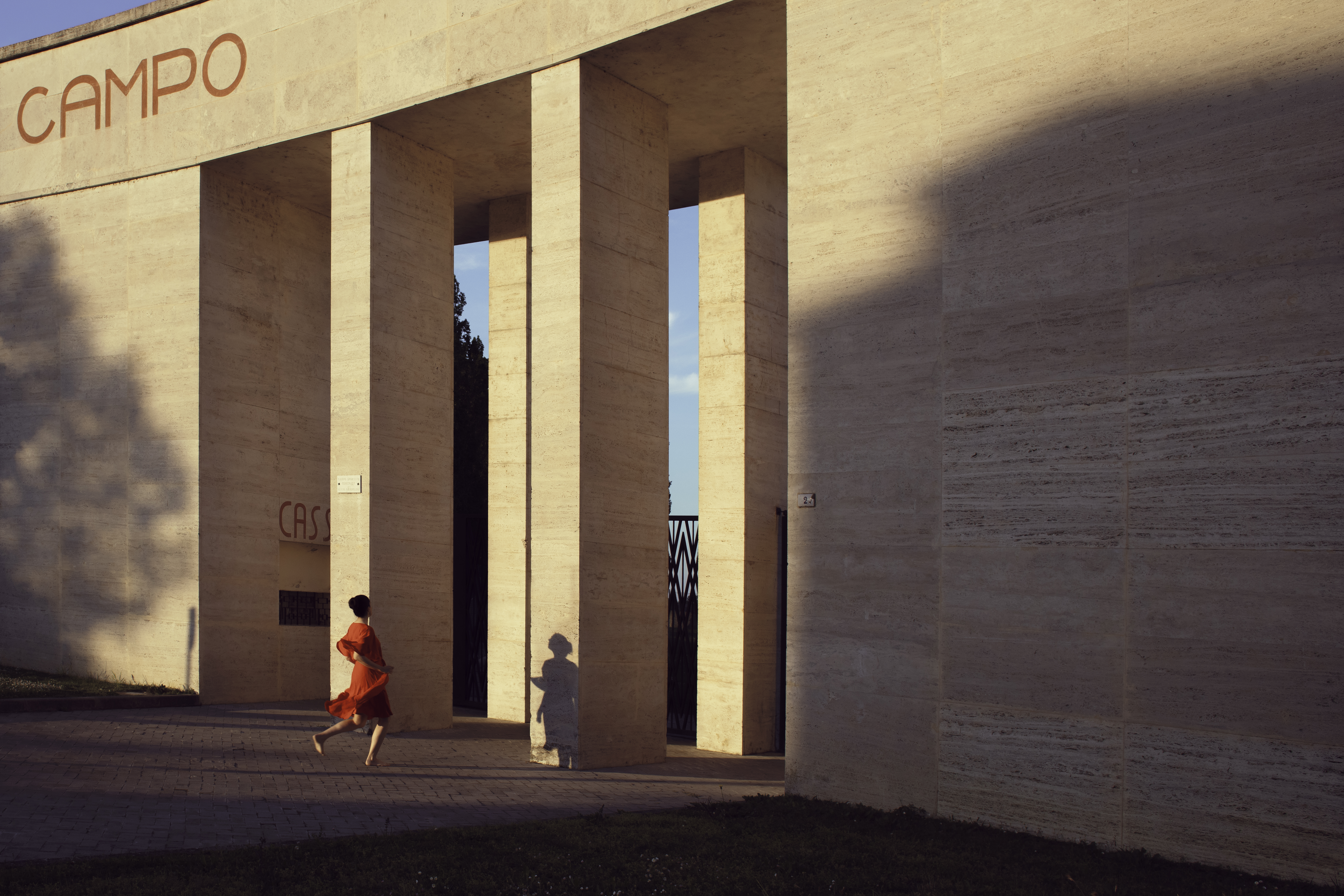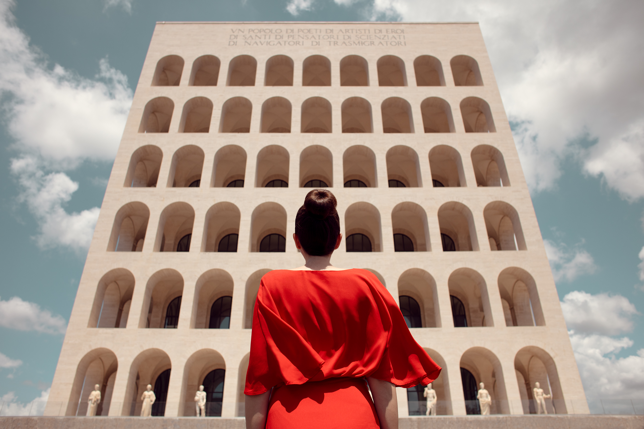 La serie fotografica "Lo spazio metafisico" è un’esplorazione intima e personale dell’interazione tra l’artista e l’architettura razionalista italiana degli anni Venti e Trenta del XX secolo. La sua ricerca sulle architetture razionaliste laziali ha radici nel suo territorio d’origine, essendo nata a cresciuta in una città di fondazione, Latina; i suoi autoritratti con il vestito rosso che l’hanno resa nota interpretano lo spirito metafisico delle architetture che ritrae come fossero piccoli atti performativi.