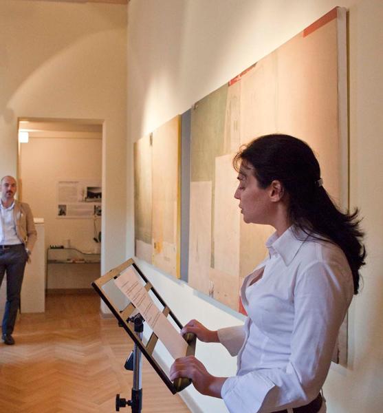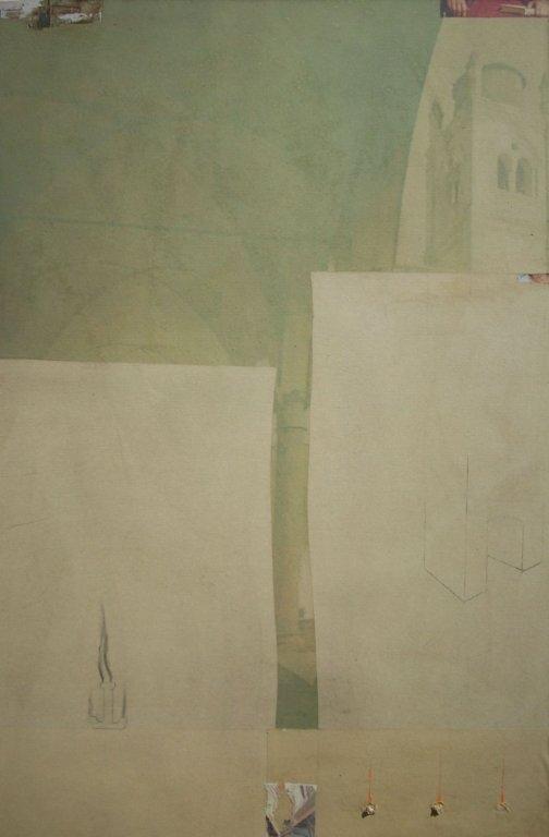 Due città distanti, ma rese vicine dalla stessa diversità di uno sguardo. Giorgio Cattani parte da vere cartoline turistiche della città di Ferrara che decolora per cancellarne la patinatura dell’attualità, che l'artista sente "bugiarda" nel suo luccichìo estetico. Ogni cartolina viene poi ingrandita e stampata su carta invecchiata, intelata e contaminata da interventi pittorici.