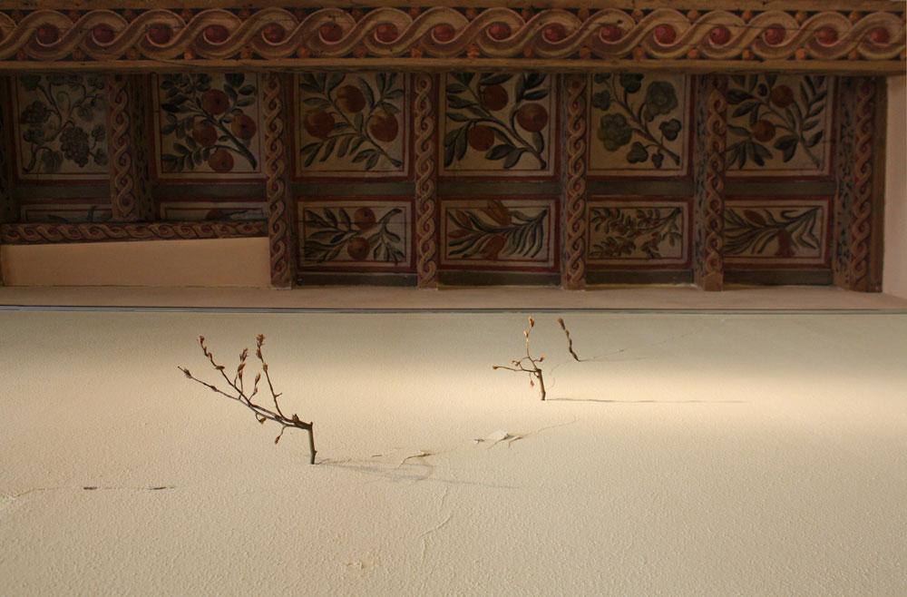 Stefano Scheda invece ha fotografato un vecchio casolare inserendo nelle finestre vuote degli specchi, che riflettono quindi ciò che si trova alle spalle dell’osservatore (un gioco alla Velásquez), nelle quattro stagioni dell’anno, accompagnando le foto con una installazione ambientale in cui da mobili e sedie escono surreali germogli vegetali.