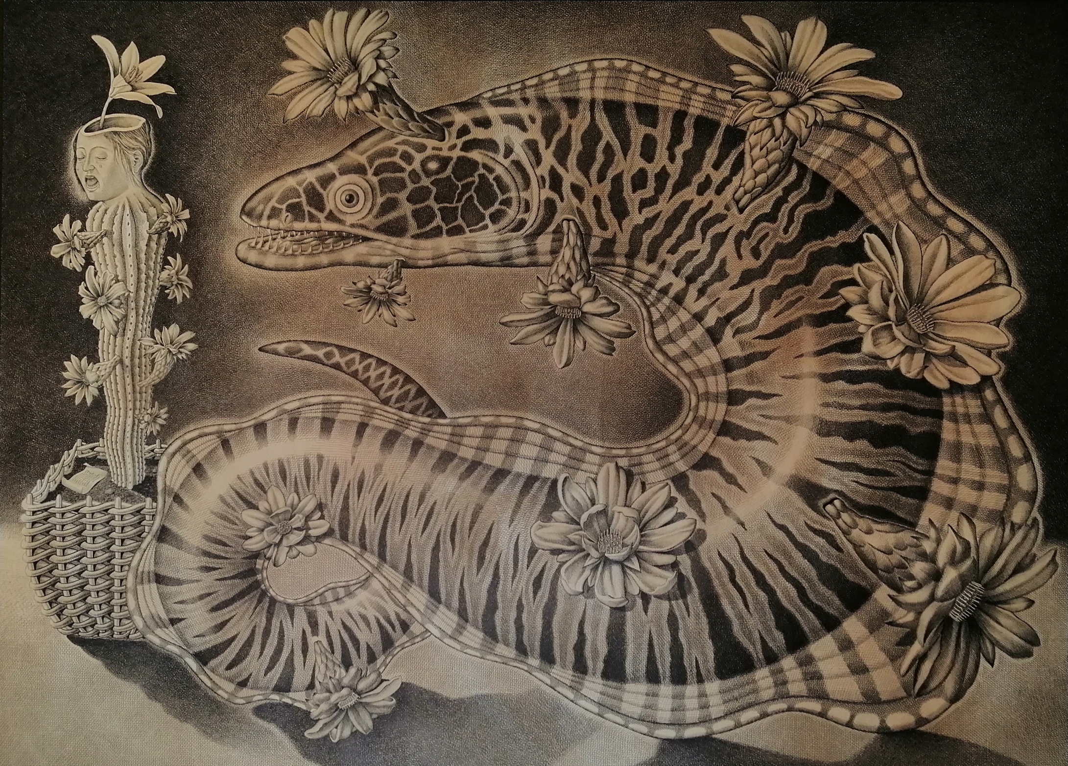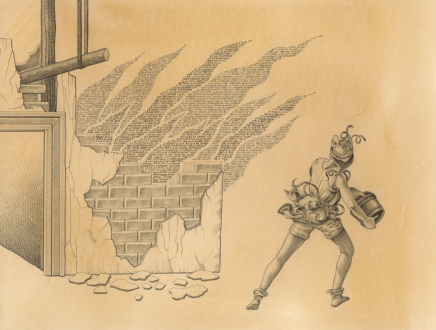 Tormento e fioritura Allegoria dell’impegno Penna su carta tinta con caffè 130x180 cm