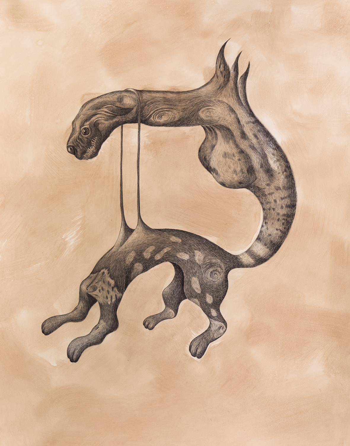 Animale disarticolato Allegoria della perdita di equilibrio mentale Penne a inchiostro su carta 150x100 cm