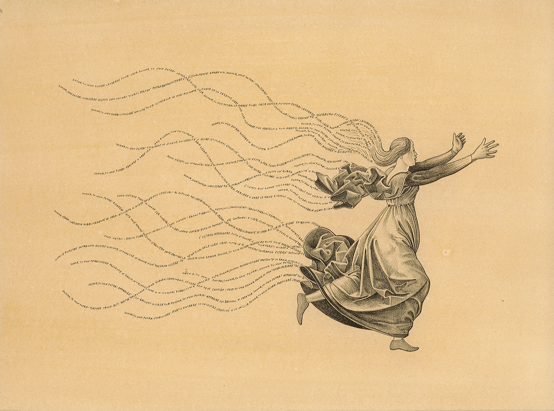 O ancora, i capelli della fanciulla presente nella predella del polittico Griffoni si trasformano in una scia di parole, che descrivono alcuni divieti imposti dalla sharia alle donne musulmane.