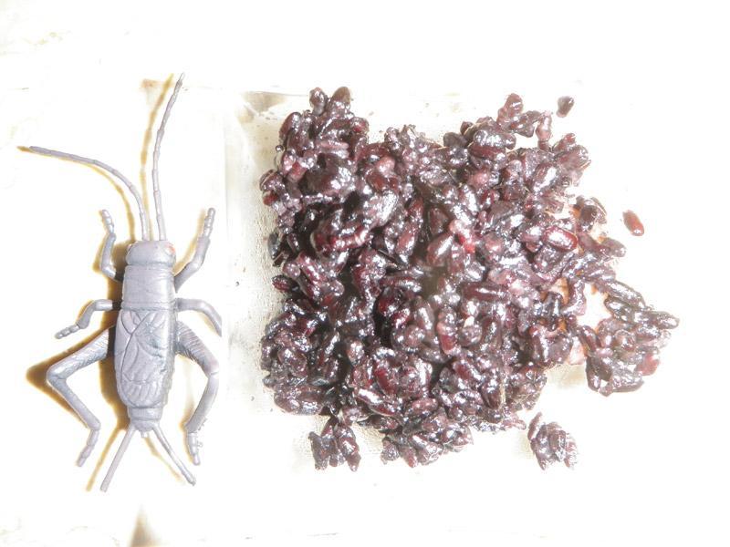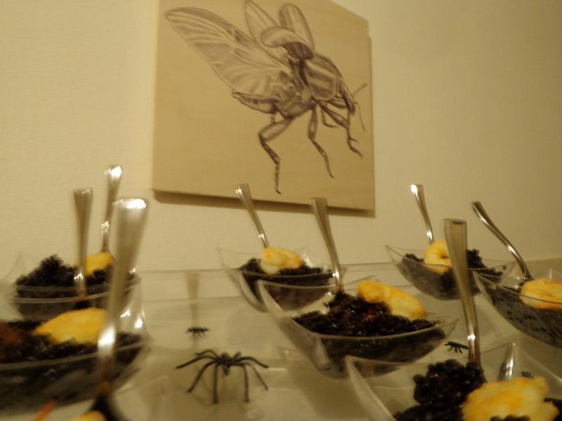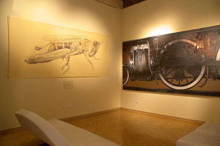 Carrà disegna insetti dettagliati fin nei più piccoli particolari usando esclusivamente la penna bic: la cavalletta ingigantita ci mostra la sua complessità di organismo vivente, facendoci sentire un po' in colpa per la noncuranza con cui noi la schiacciamo.