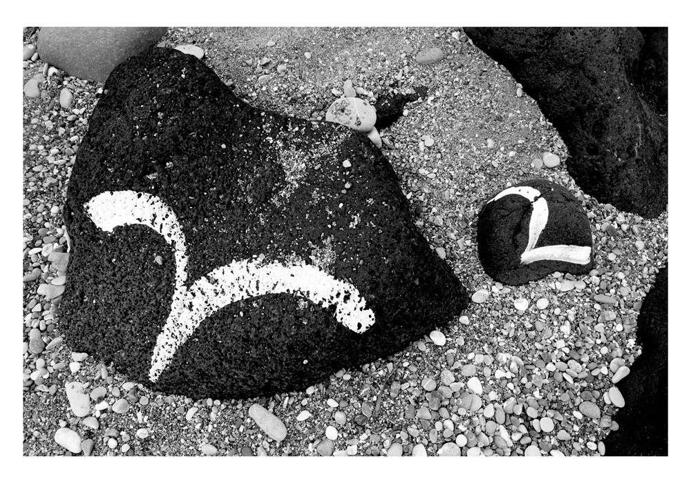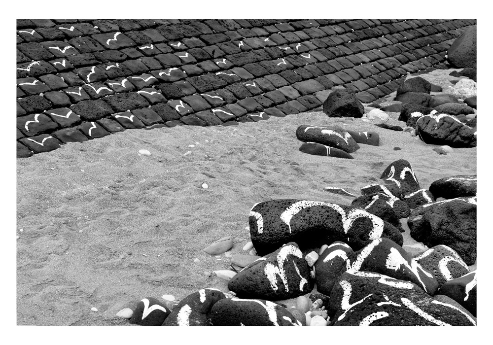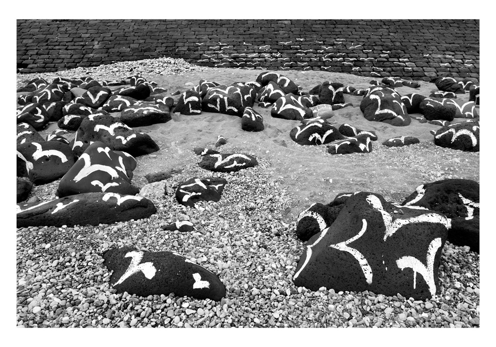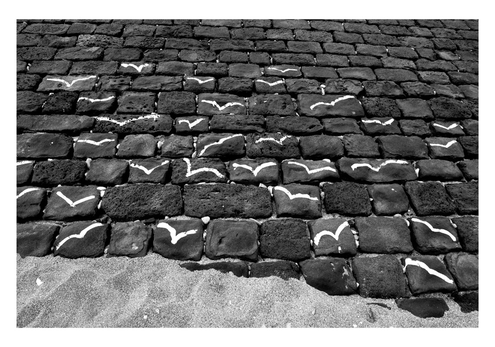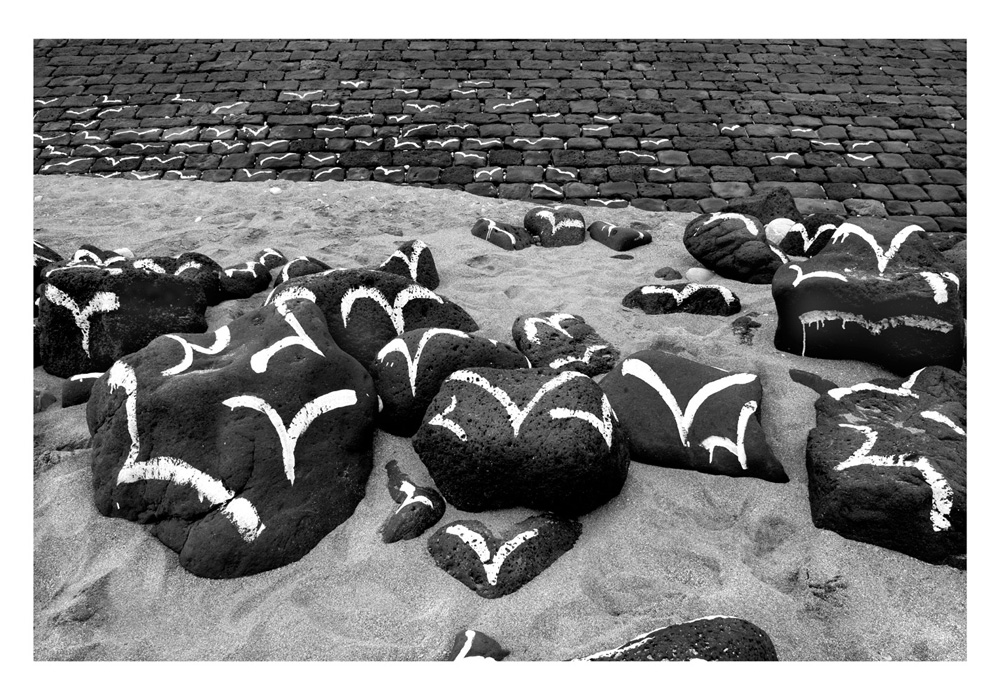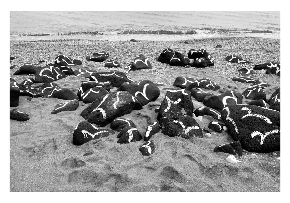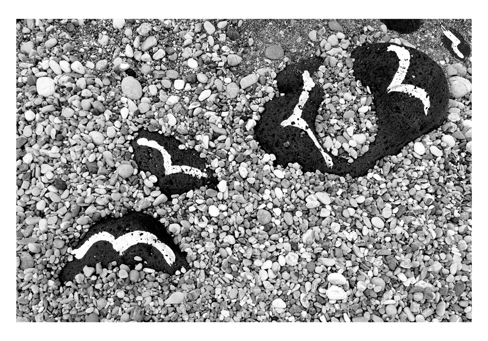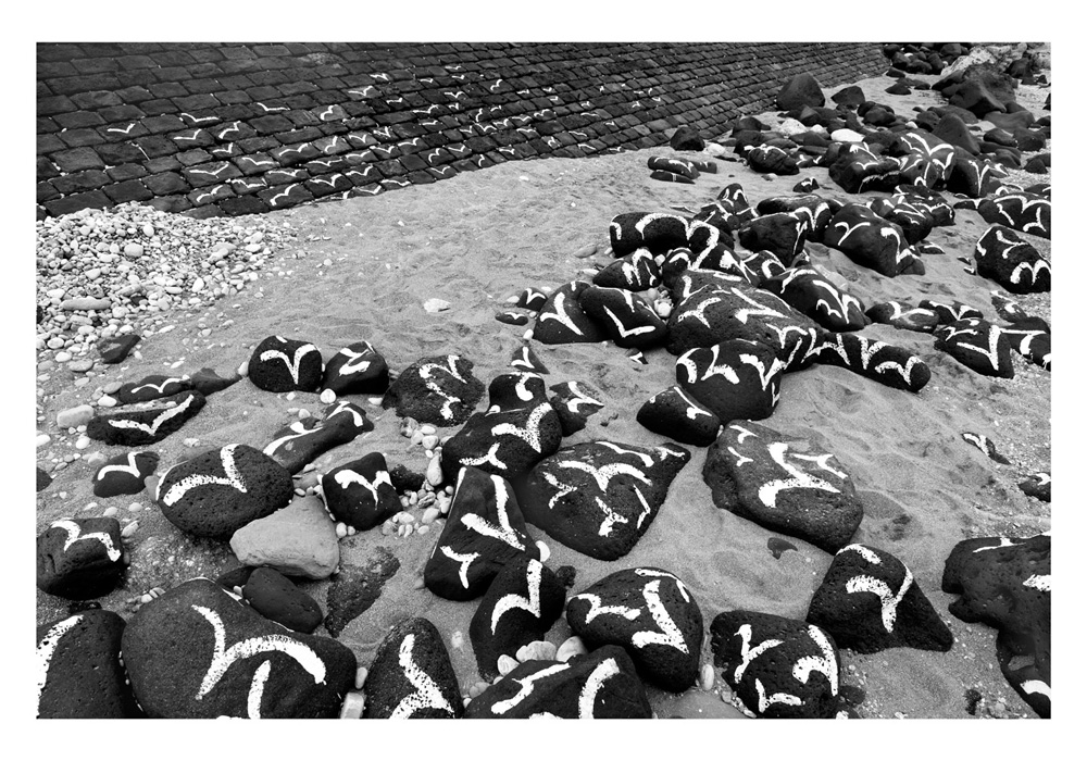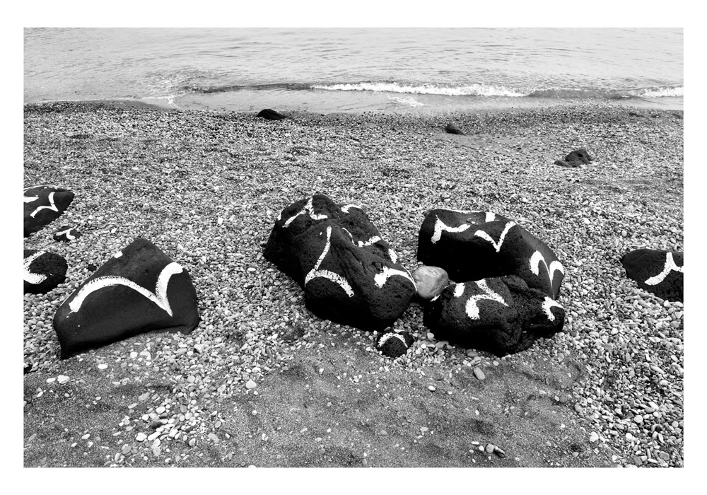 Sono immagini di una crisi, in cui la forza estetica assume un preciso valore etico. Il campo fotografico, quello della sociologia e della politica si fondono e le fotografie, lontane dal mondo del fotoreportage, si propongono piuttosto come immagini assolute fortemente evocative. È il caso di Segnimigranti, una serie nata dall’emozione dell’artista per la morte tragica di oltre trecento migranti nelle acque di Lampedusa nell’ottobre del 2013. Sulla spiaggia di Giardini Naxos i massi di lava nera sono stati segnati con tempera bianca, un riferimento alla pittura corporea del mondo africano: numerazione dei corpi, ma anche liberatorio volo di gabbiani. Qui disegno e fotografia si intrecciano, perché Cresci traccia un segno essenziale, bianco, quasi a marchiare il terreno in modo delicato ma definitivo, per raccontare le vittime dei naufragi, gli assenti all’approdo, i dispersi senza nome. Il segno fotografato diventa al tempo stesso racconto e assunzione di responsabilità, l’artista si fa carico della tragedia prendendola su di sé, attraverso il gesto performativo, con l’essenzialità di un sentimento di pietas.