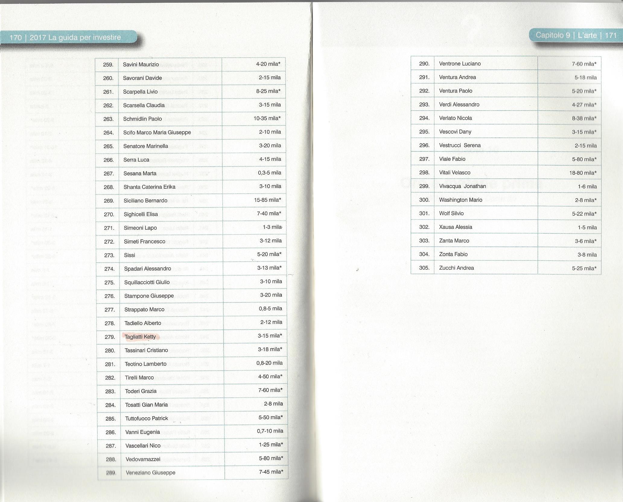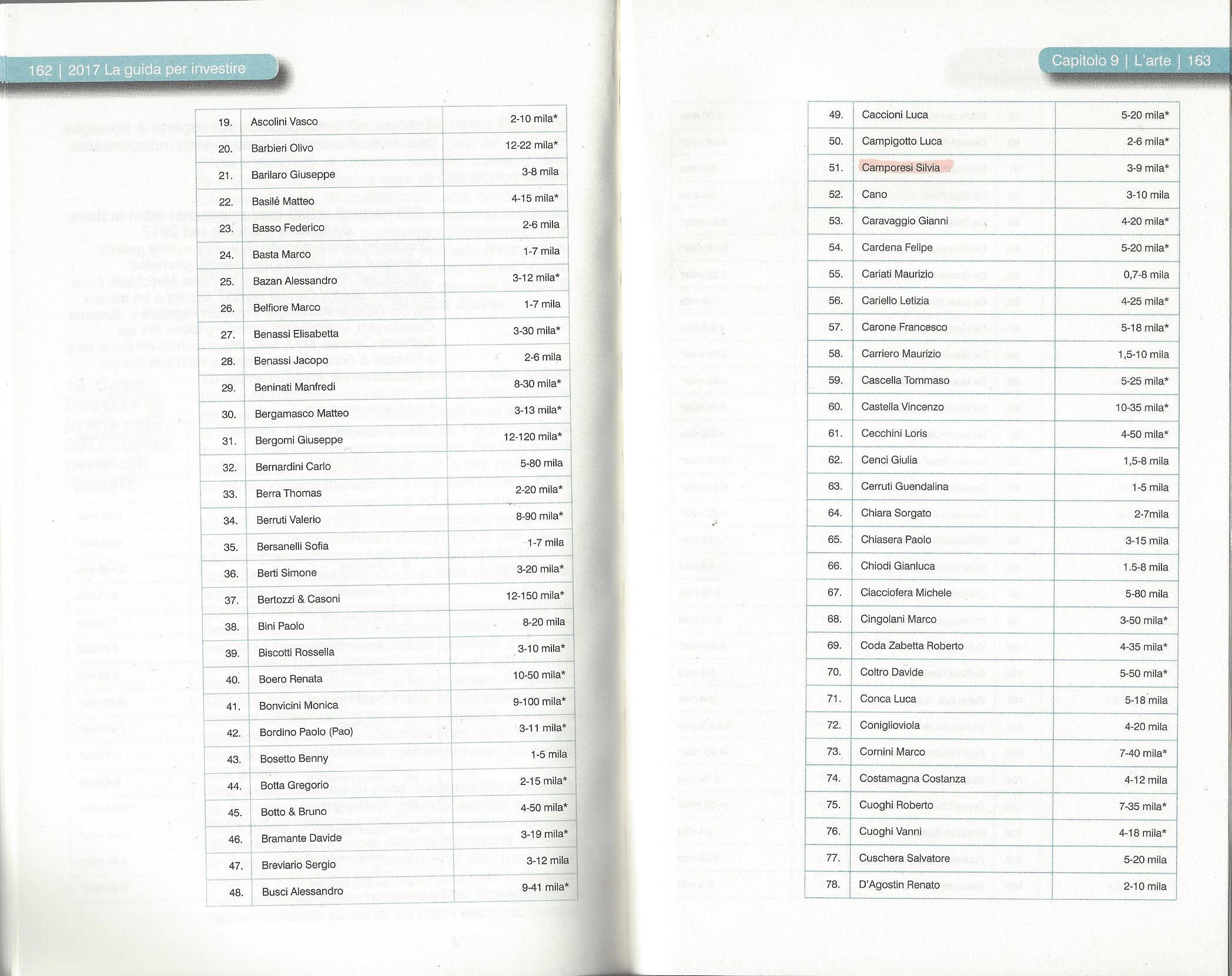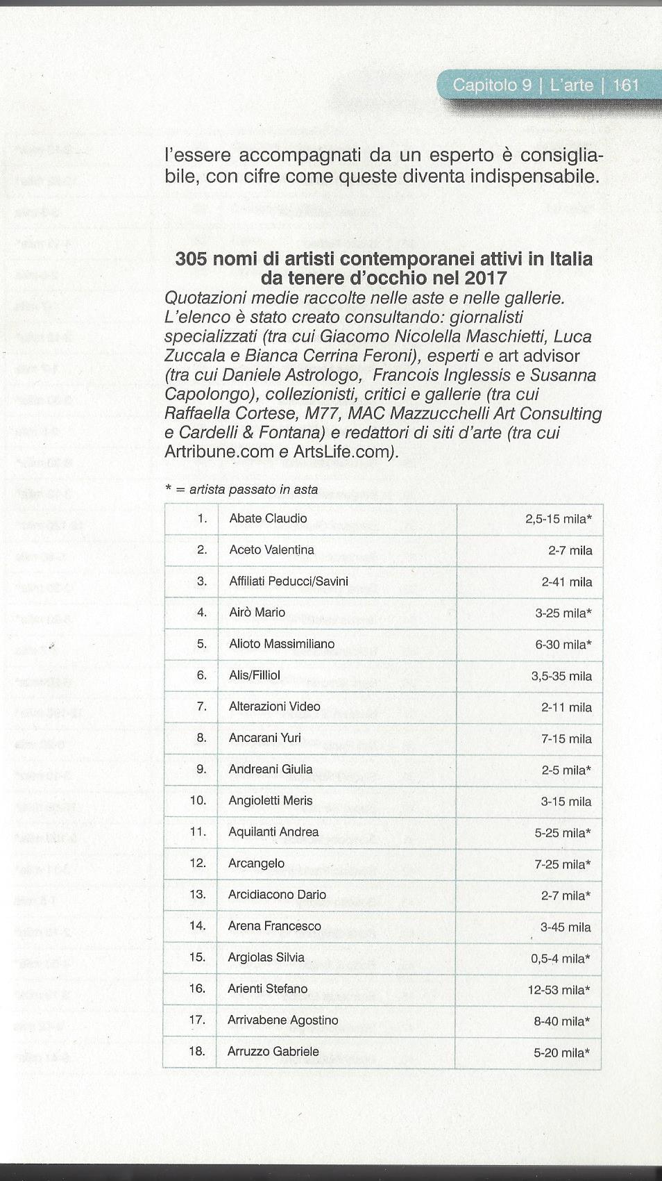 La guida 2017 del Corriere della sera per investire, nella sezione Arte fra gli artisti da tenere d'occhio ne troviamo ben tre dei nostri: Silvia Camporesi, Marco Di Giovanni, Ketty Tagliatti.